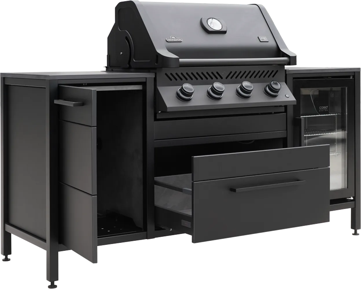 Die Burnout BBQ Block bietet Ihnen grenzenlose Gestaltungsfreiheit. Sie können aus einer Vielzahl an Optionen wählen, darunter verschiedene Grillvarianten, Cooler, Spüle, Kochfelder, Zapfanlage oder einfach zusätzlicher Stauraum. So lässt sich die Küche individuell an Ihre Wünsche anpassen.