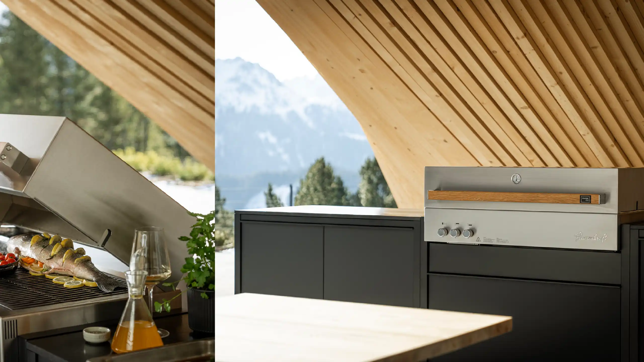 Nerušený výhled na rozlehlé hory je snad jedním z nejkrásnějších darů, které příroda nabízí. Štěstí má ten, kdo může dům či byt na horách označit za své. Ještě krásnější je, když mohou svou terasu doplnit venkovní kuchyní od Burnout a vychutnat si skvělé jídlo vedle úžasného výhledu. Našim kuchyním nezáleží na tom, zda vaříte při -10 nebo plus 20 stupních; jen se možná budete muset vhodně obléknout. Pak už vašemu venkovnímu požitku nestojí nic v cestě.